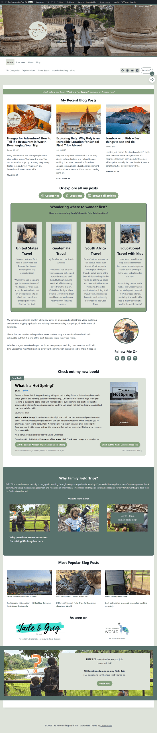 Neverending Field Trip is my own personal website, and one of the best examples of what I can do. This website was made with WordPress.